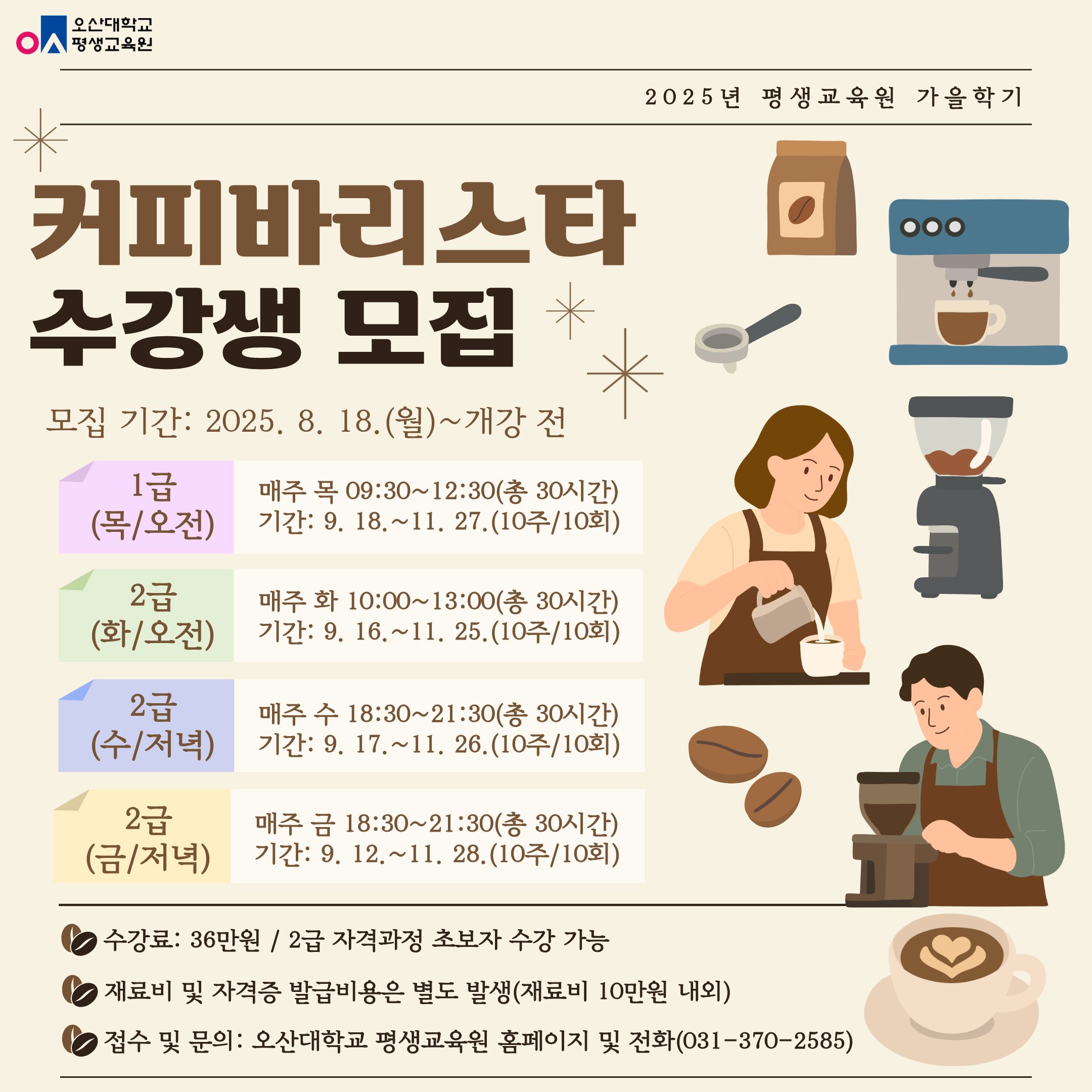 강의실 | 오산대학교 종합정보관 지하2층 A-B204(커피바리스타룸) |
