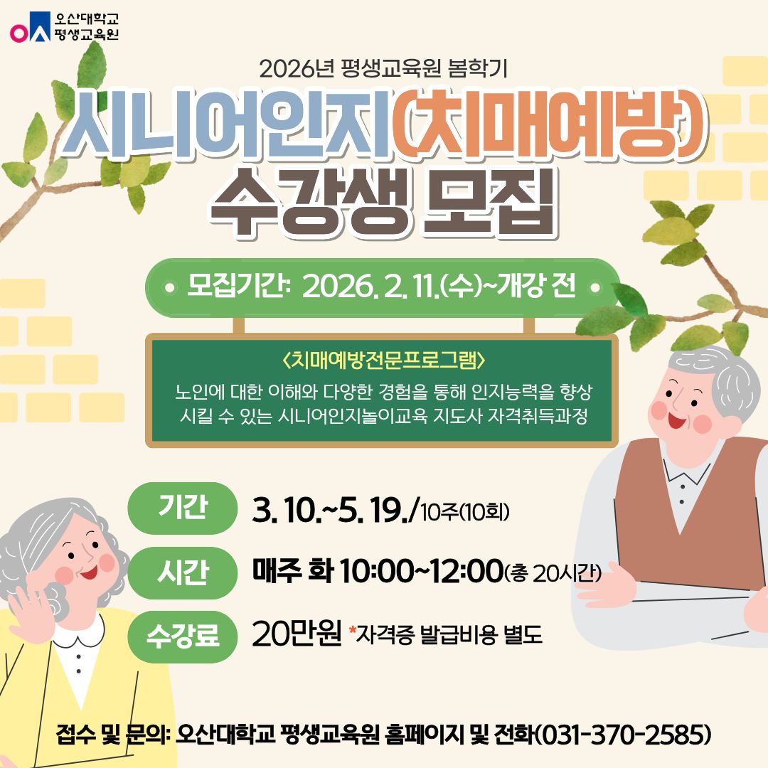| 교육과정 | 시니어인지프로그램 (치매예방) | ||