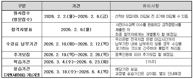 2026학년도 1학기 평생교육실습 수강생을 모집합니다.